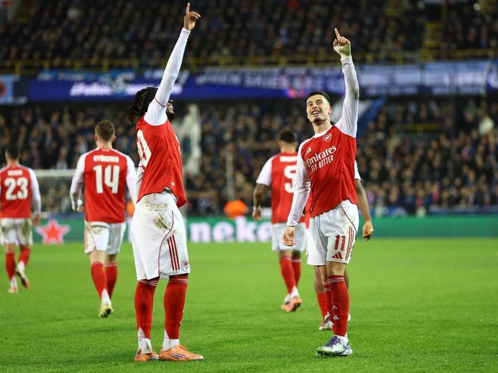 阿森纳欧冠六战全胜领跑积分榜,客场3-0完胜布鲁日